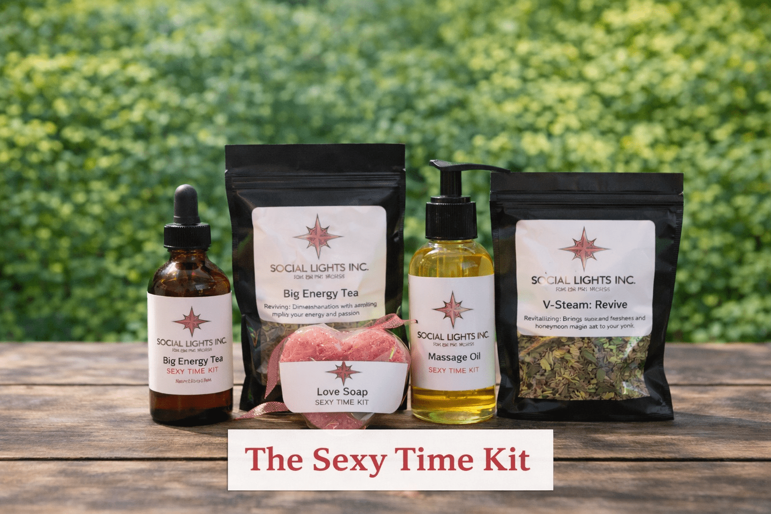Ignite passion and intimacy with SoLitInc’s Supernatural: Sexy Time Kit. Includes Big Energy Tincture, Big Energy Tea, Love Soap, Massage Oil, and V-Steam: Revive. Shop now for a sensual experience!